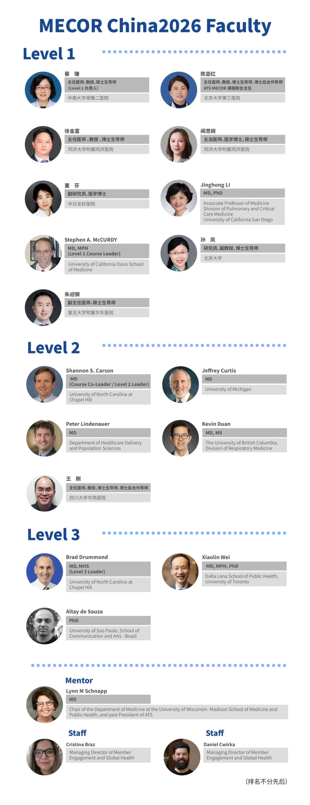 十二年,足以让一棵树苗长成栋梁,也足以让一颗颗科研新星汇聚成璀璨星河。2026年3月24日至29日,第十二届“ATS MECOR China 暨慢性气道疾病临床科研领航项目”将在上海再度启航——群星再聚,绽放申城,开启呼吸领域国际合作的崭新一页。本届项目由广东省钟南山医学基金会、北京慢性病防治与健康教育研究会联合主办,同济大学附属同济医院、同济大学医学院呼吸病研究所协办,汇聚20位国内外MECOR项目权威教师,以及由ATS遴选的54位优秀中青年学员,届时将齐聚申城,共襄世界级临床科研培训盛会。